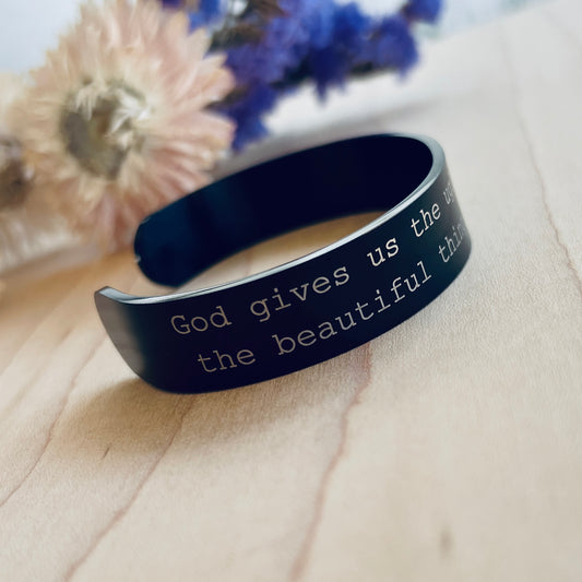 God gives us the ugliness so we don't take the beautiful things in life for granted (Colleen Hoover) | Cuff Bracelet