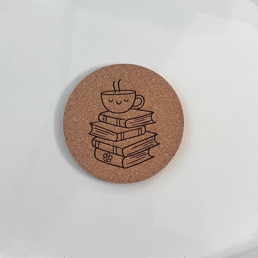 Mug with Book Stack | Cork Coaster Set