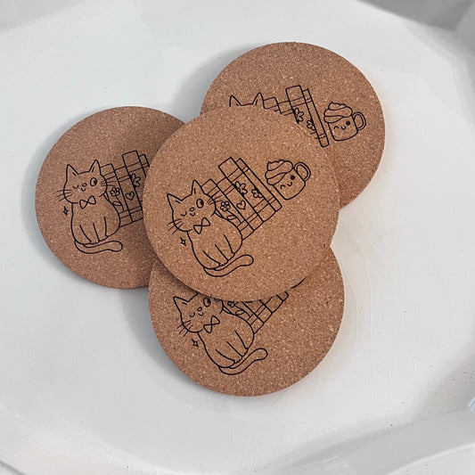 Cat with Books | Cork Coaster Set