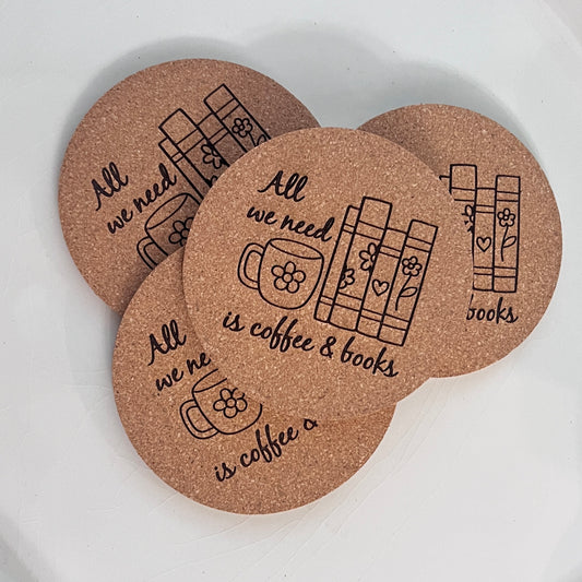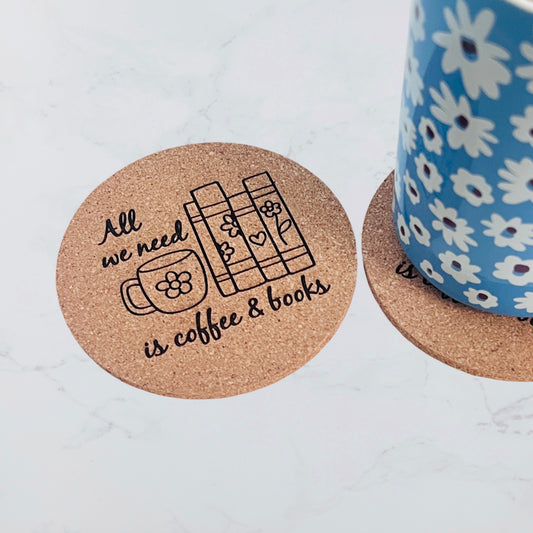 All we need is coffee and books | Cork Coaster Set