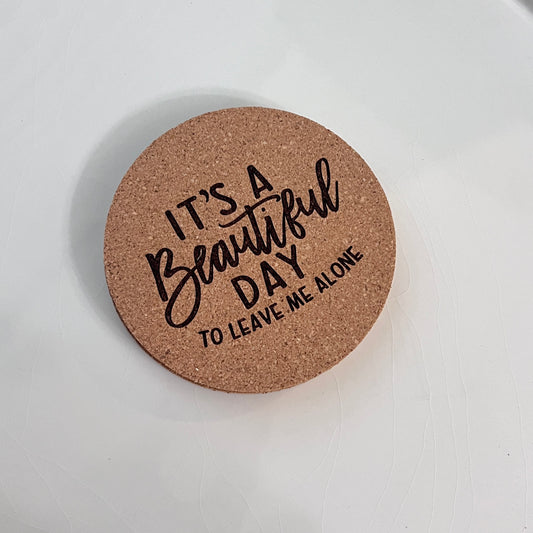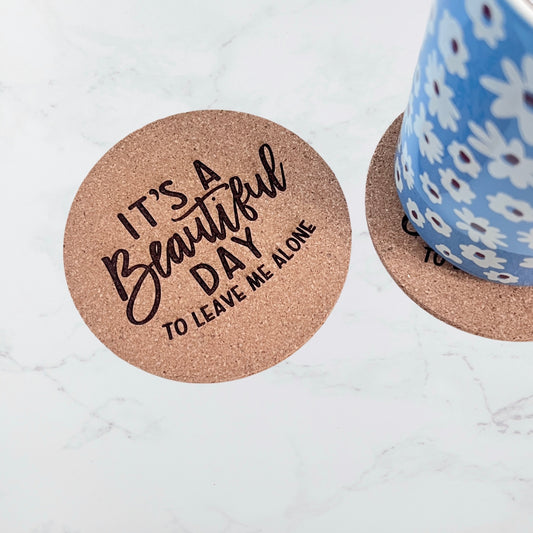 It's a beautiful day to leave me alone | Cork Coaster Set