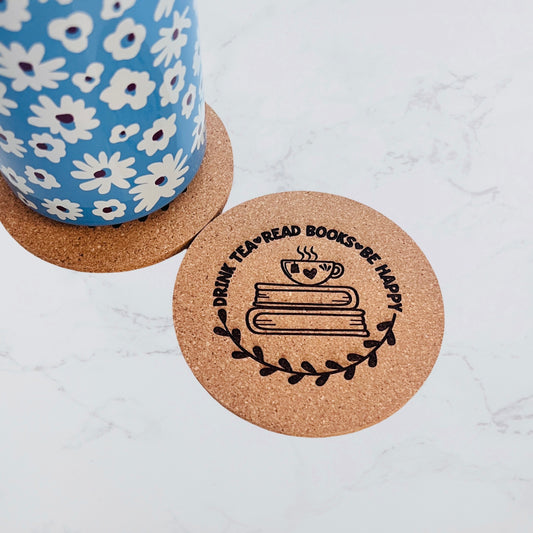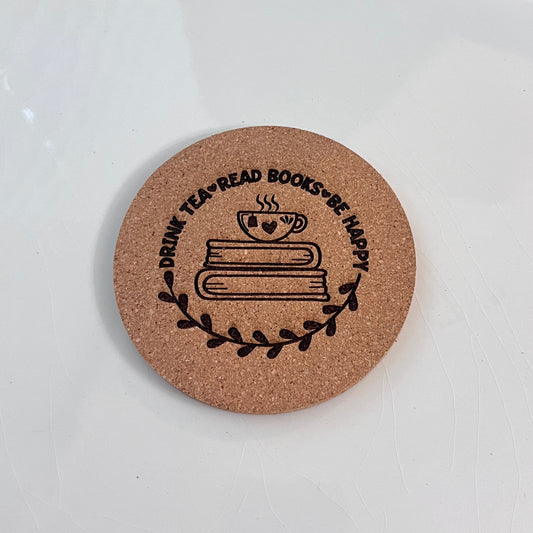 Drink Tea, Red Books, Be Happy | Cork Coaster Set