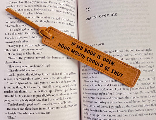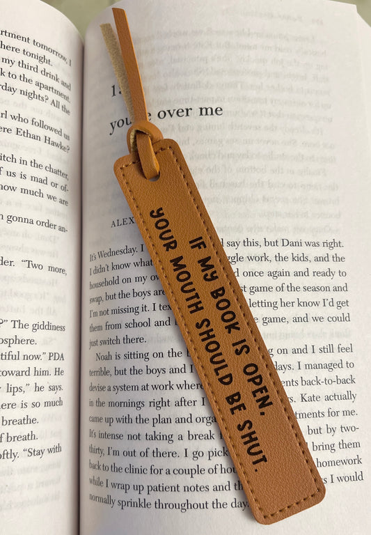 If my book is open, your mouth should be shut. | Leather Bookmark