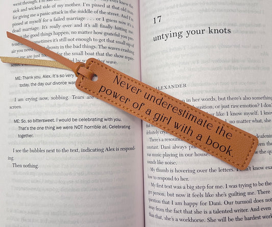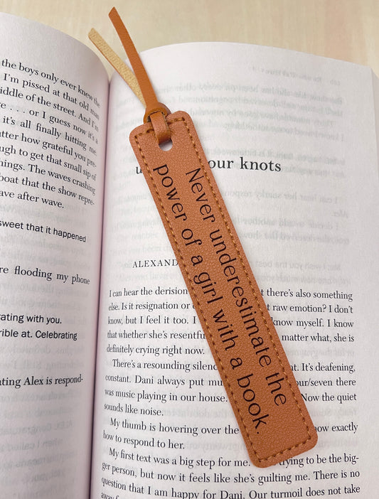 Never underestimate the power of a girl with a book | Leather Bookmark