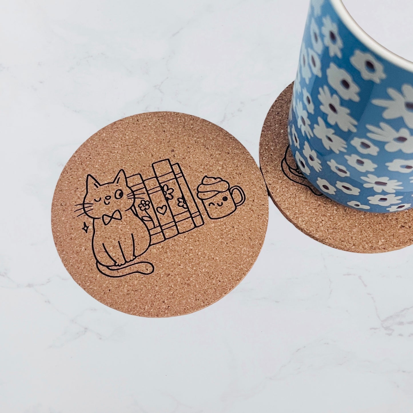 Cat with Books | Cork Coaster Set
