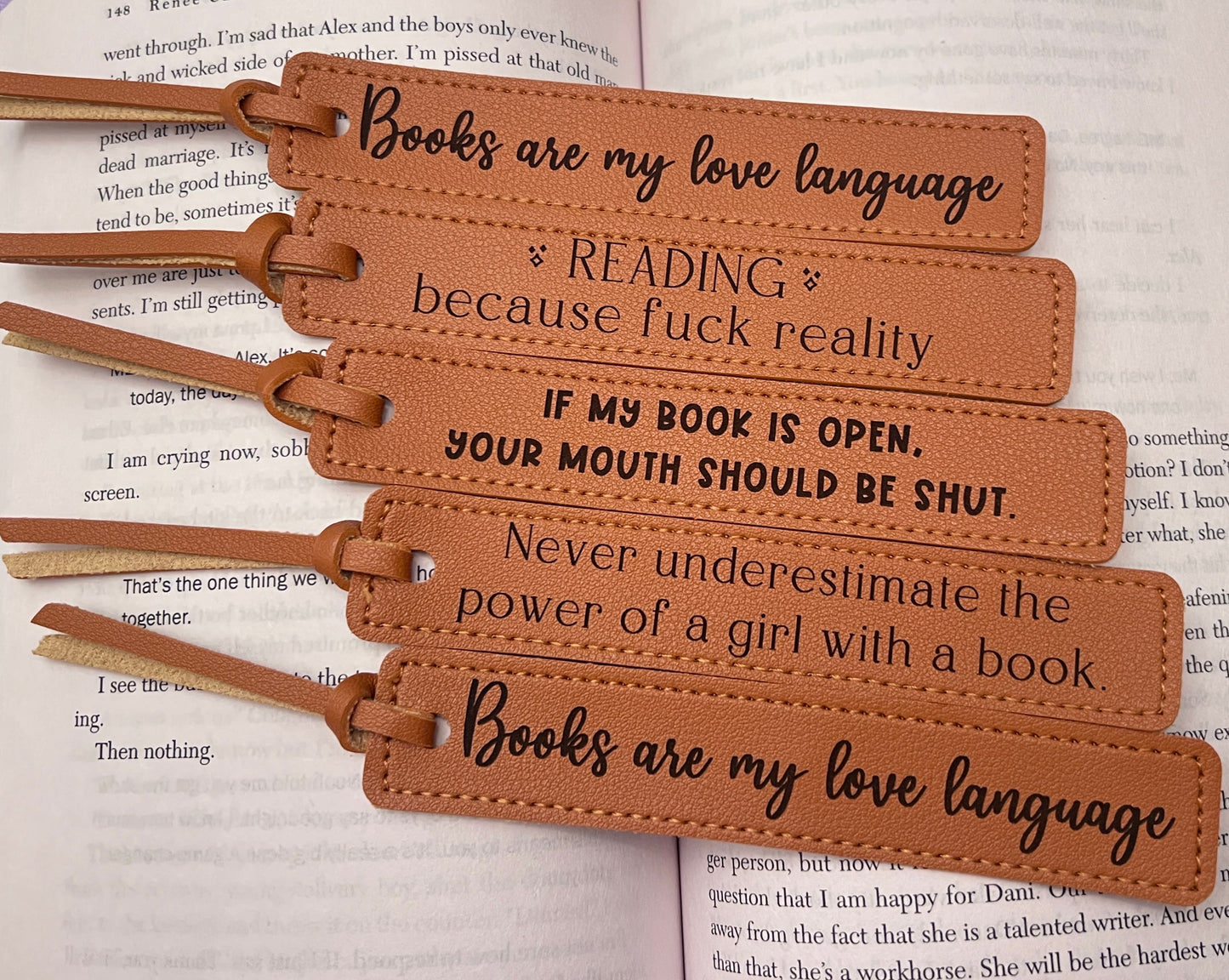 These adorable soft leather bookmarks are approximately 5” x 1” and can be personalized with whatever text you’d like!