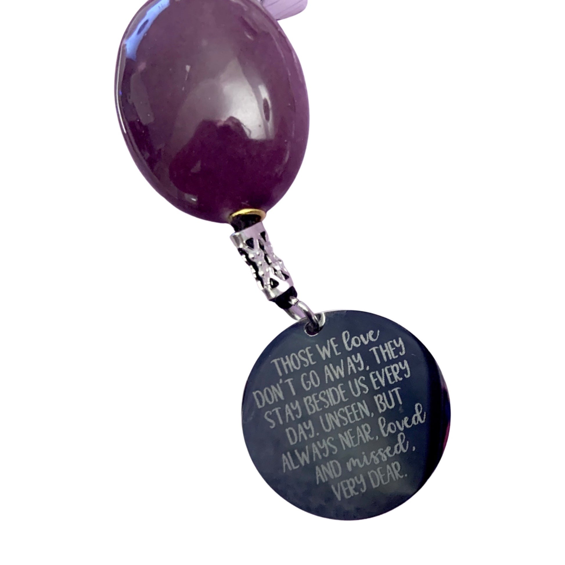 Front of disc reads "Those we love don't go away, they stay beside us every day. Unseen, but always near, still loved and missed, very dear." Back of disc can be engraved with a name or a photo if the buyer chooses.