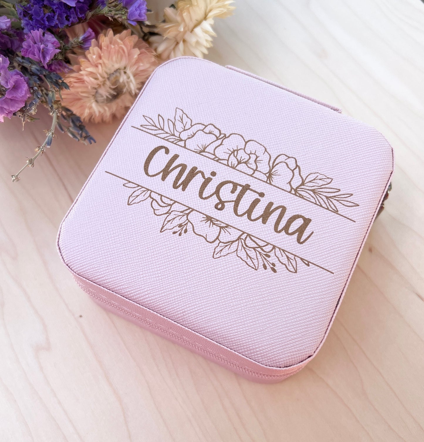 Tags: Bridesmaid | Bride | Mother's Day Gift | Woman's Gift | Custom Jewelry Box | Travel Organizer | Mini Jewelry Box